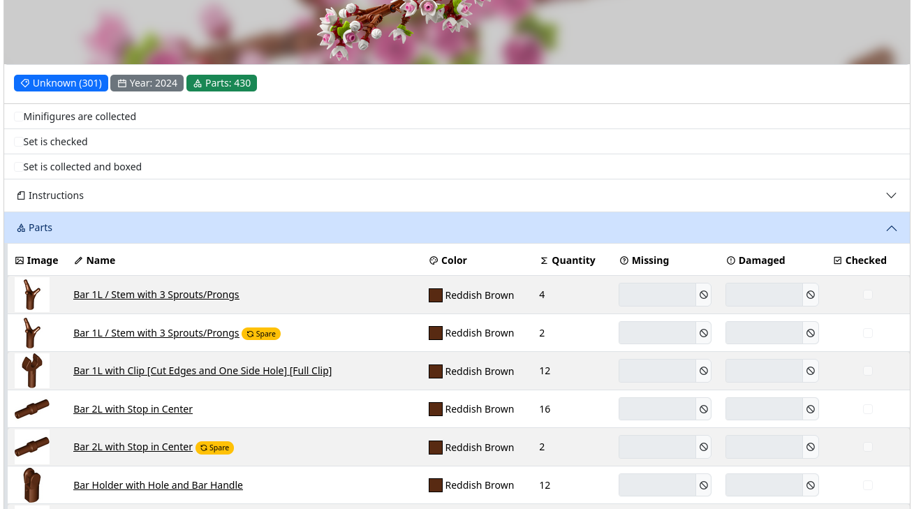 - ✅ Browsing collections: View sets, parts, minifigures