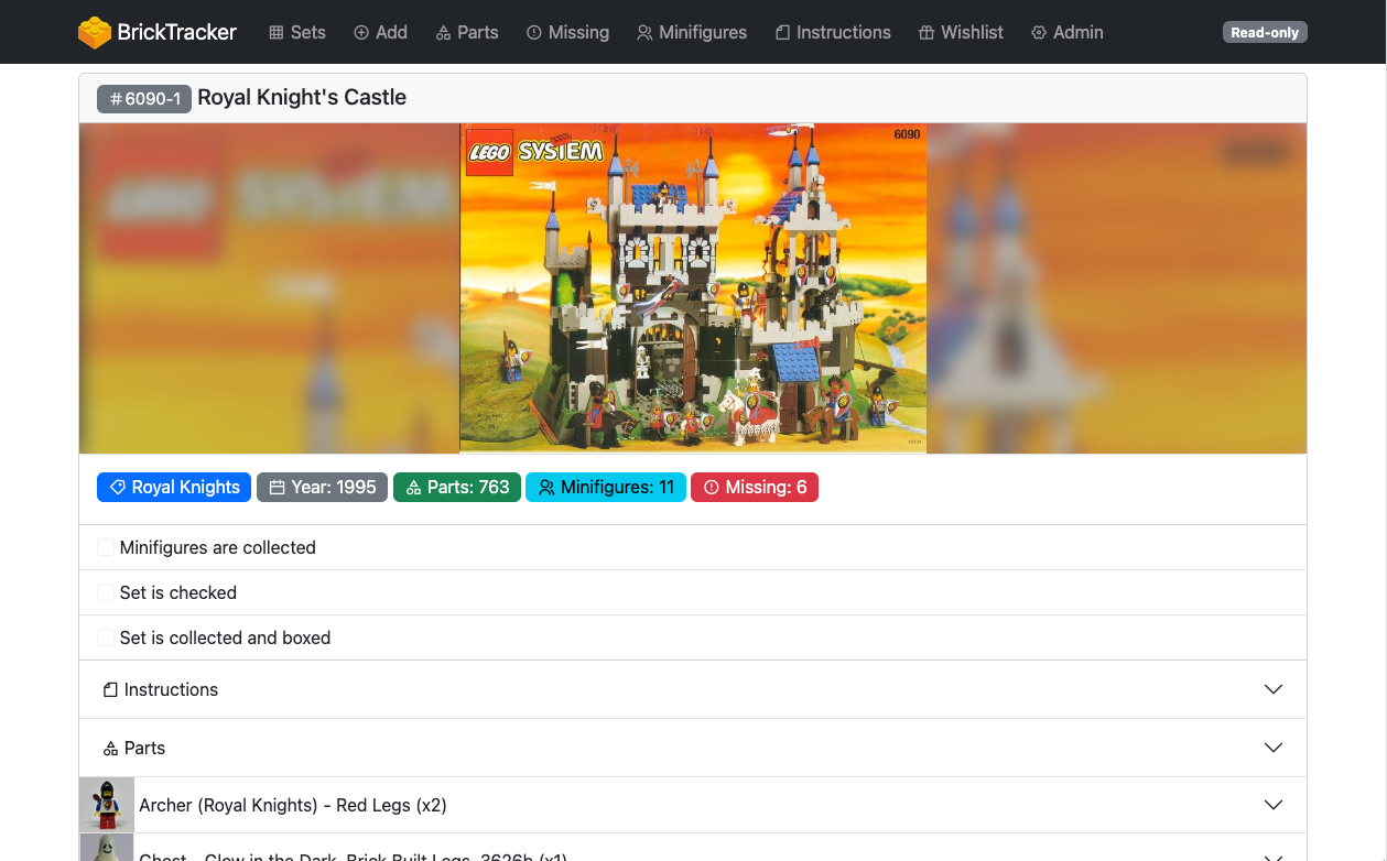 The screenshots on this page are based on version 1.0.0 of BrickTracker.