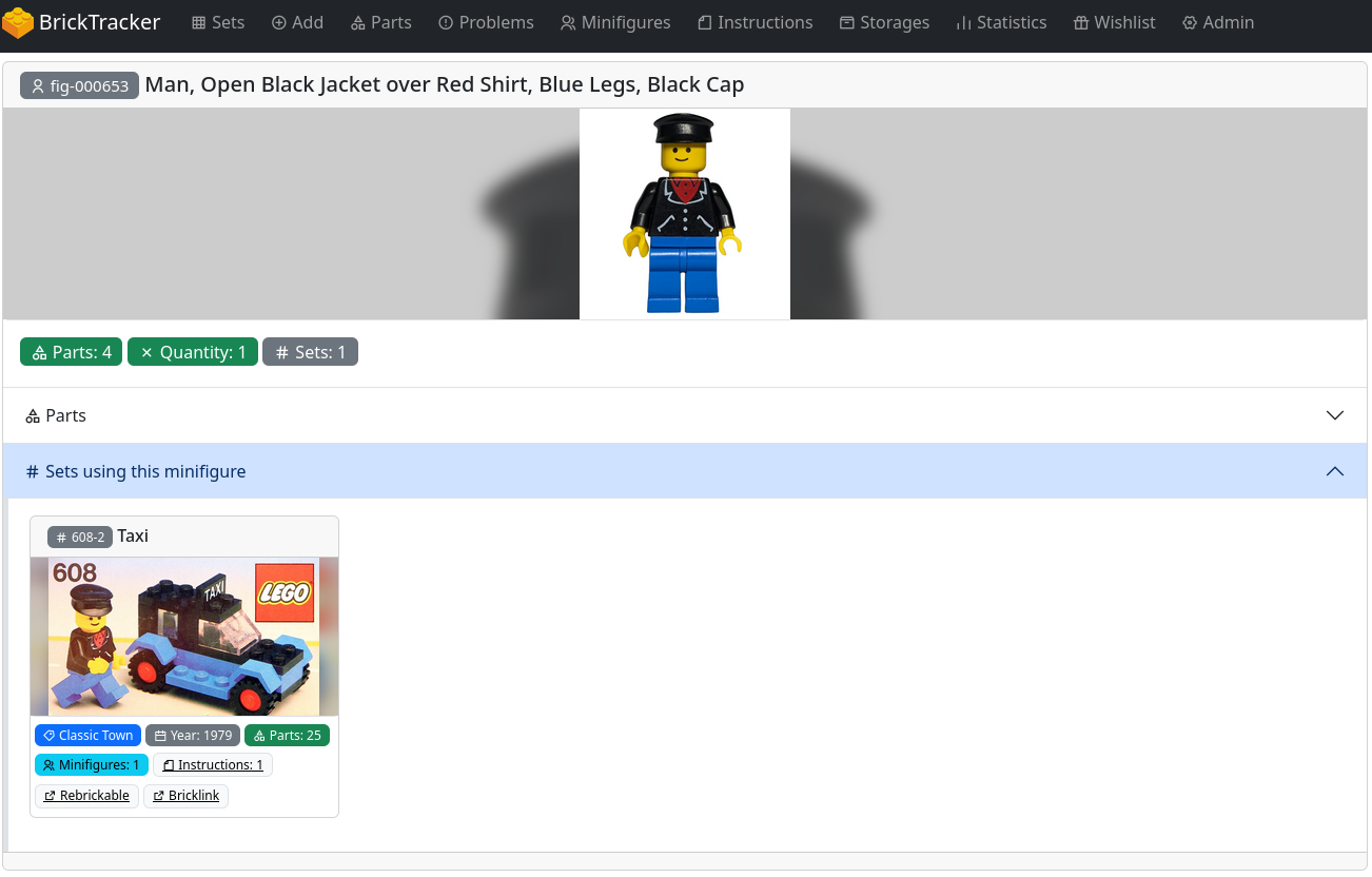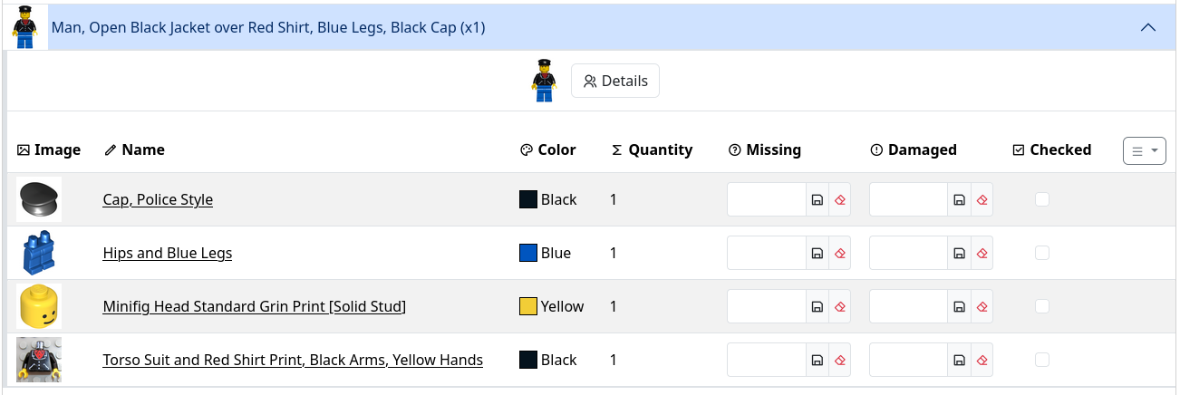 You can also check the details of the minifigure pressing by clicking on the Details button.